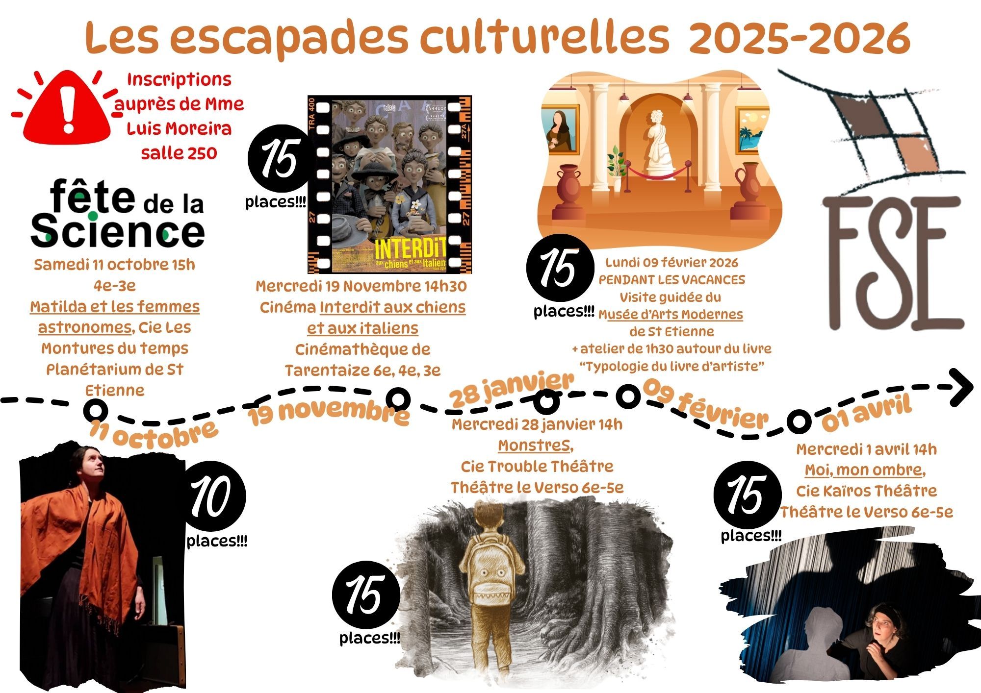 Voici le programme 2025-2026 des escapades culturelles organisées par le collège.